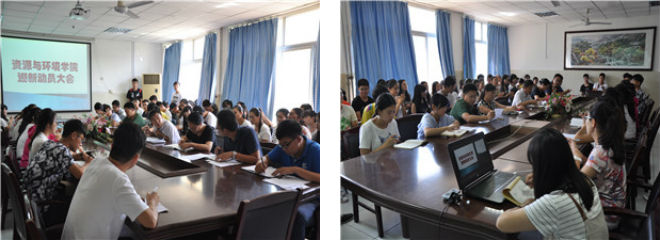 会议开始由学生组织代表汇报迎新工作的安排以及各部门分工。