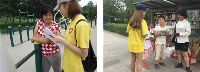 “绿之光”社会实践团来到樊家窝村留仙湖公园,向村民分发水污染知识宣传手册,带领村民签署保护樊家窝村生态环境倡议书。