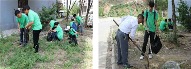 中午十二点二十分,入党积极分子准时在南苑集合。在各党支部划区、分组后,同学们按照安排积极行动起来,捡拾校园垃圾,并用垃圾袋进行收集处理,将美化校园和节能环保落到实处,积极迎接本次教学审核评估活动。同学们冒着炎热天气,没有丝毫退缩和埋怨,有的从理发店借来铁锨和扫帚,有的自制捡垃圾工具,有的提前准备好了一次性手套。同学们走到楼前楼后、洗浴中心周围,仔细拾捡草丛、石缝、路边和树木中的烟头、塑料、烟盒、牙膏皮、破碎酒瓶等杂物。经过一个半小时劳动,成人av