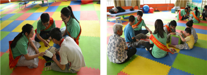 志愿者服务队准时来到康复中心。在与康复中心工作人员做详细交流、了解注意事项后,志愿者们正式与康复中心的孩子们见面。第一次面对志愿者们陌生的面孔,孩子们略显拘谨。志愿者分别为孩子们讲解了语文古诗、数学计算题和英语单词课文,孩子们从中获益匪浅。学习之余志愿者与孩子们一起做拼图游戏,为孩子们表演才艺,拉近与孩子们之间的距离。志愿者陪孩子们一同聊天,观看动画片,陪孩子们度过了一个欢乐而又有意义的下午,也为此次志愿活动画上完美的句点。