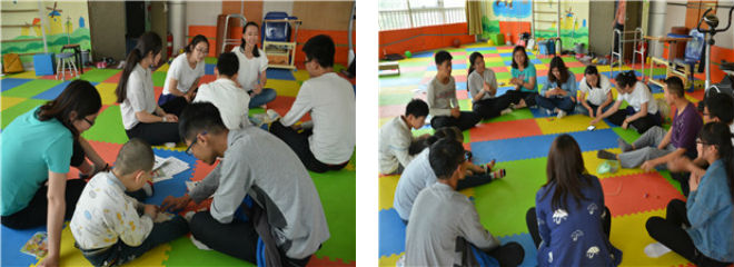 志愿者们准时到达康复中心。午睡刚醒的小朋友们见到志愿者们略显拘谨,在和志愿者们玩了一会儿拼图后渐渐放松下来。志愿者为六年级小朋友讲解古诗背后的故事,加深他们对古诗的理解,并与孩子们一同背诵古诗。学习过后志愿者为孩子们表演了一段精心准备的舞蹈,赢得了孩子们阵阵掌声。随后志愿者们和孩子们围坐一圈,为孩子们哼唱儿歌,一首首耳熟能详的歌曲拉近了志愿者与孩子们的距离,也为本次志愿服务活动画上一个完美的句号。临走之际孩子们依依不舍地与志愿者挥手道别。