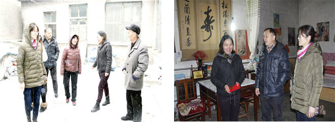 家访小组的脚步。领导和老师们一路冒着严寒,来到曹同学家中。曹同学的母亲看到老师们来访,热情的招待大家进屋取暖。家访过程中,老师们深入贫困学生家庭,与学生家长促膝交谈,嘘寒问暖,并送去了年货和慰问金。郭书记亲自将慰问金交给曹同学的妈妈,问候了学生的家庭情况及生活上的困难,并关切的向曹同学的母亲了解了曹同学的就业状况,表达了对成人av