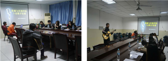 比赛开始之前,选手们来到选拔室外进行最后的练习和心理调整。晚上7点30分,比赛正式开始,选手们陆续入场演唱自己精心准备的曲目。3号选手演唱的粤语歌曲《喜欢你》得到了评委的认可,嘹亮动听的歌声让在场所有人沉醉其中。6号选手自弹自唱,用轻快的曲调加之成熟的台风演绎了一首英文歌曲《Im yours》,令在座的评委眼前一亮。除此之外,感情真挚的《一吻之间》,温暖贴心的《一次就好》……一首首风格各异的歌曲凭借着演唱者扎实的唱功得到了精彩的演绎。选手们通过这个舞台得以展现自己的特长,用歌声抒发了对大学生活的美好追求与向往,也用自己的青春与活力感染了在场的每一个人。