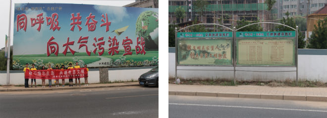 上午,实践团队员们到达吴家堡,队员们以小组形式分头对当地环保宣传力度及居民对当地生活环境的看法进行了调查。行走在吴家堡的大街小巷,队员们随处可见的关于环保知识的宣传栏及宣传标语。当地村委会对环保的大力宣传,不仅在一定程度上提高了居民的环境保护意识,而且有助于当地居民养成保护环境的良好习惯。实践团队员在于当地居民的闲谈中,了解到近几年当地村委会为提高当地环境质量采取了系列措施,居民的生活环境也得到了极大地改善,但居民也表示改善环境之路仍然很漫长。