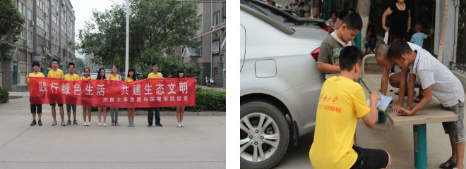 吴家堡社会实践团成员于7月23日深入当地居民生活小区进行环保知识宣传。