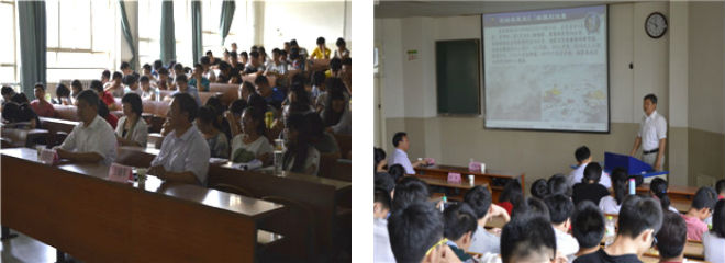 防震减灾科普宣传基地正式成立,并由杜贻合局长和王晓军老师共同为宣传志愿者代表颁发证书。杜局长还代表济南市地震局送来了防震减灾宣传材料,以鼓励同学们积极加入到抗震减灾的宣传志愿活动中去。伴随着热烈的掌声,讲座正式开始,杜局长采用具体实例展开对“防震减灾与地震热点问题”的探讨,使同学们更加透彻的了解有关地震方面的知识。杜局长指出,应对地震问题,不仅要加强自身的防范意识,更要做好相关的防范措施,防范于未然。