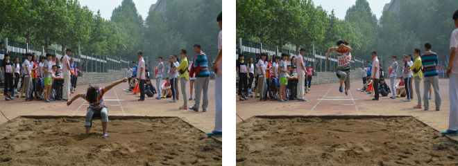 比赛开始前,运动员们满怀自信,彼此打量着对方的实力并各自做好准备活动,积极调整心态,为赢得比赛做最后的努力。紧接着的哨声打破了原本平静的气氛,运动员们各自进入备战状态,选手们有序的轮番上场,离弦似的助跑、有力的起跳、平稳的落地,所有的动作一气呵成,轻捷的身影在空中划出一条条优美的弧线。现场观众也被运动员的竞技精神所熏陶,纷纷为运动员们助威,加油声此起彼伏场面甚是壮观。