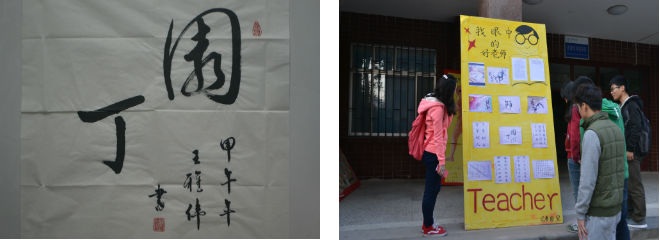 在八食广场贴出活动海报,鼓励同学们以多种多样的形式向大家展示自己身边的好老师。成人av