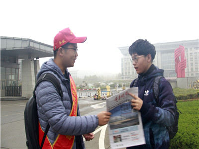 上午九点三十分,同学们在升华广场集合,经过负责人简单讲解后,同学们领取报纸,开展义卖活动。刚开始,同学们都有些拘束,略显扭捏地向市民推荐报纸,但随着活动的进行,他们的拘束感逐渐消失,即便遭到一连串的拒绝,志愿者仍然面带微笑,积极耐心地向过往行人解释活动的意义,许多热心市民了解活动详情后,纷纷慷慨解囊,买下志愿者手中的一份份报纸。初冬的天气俨然算得上寒冷,志愿者们顶着丝丝寒风义卖报纸,尽管身上冻得几乎打哆嗦,但热心市民们买下的每份报纸,奉献的每份爱心,都让他们心中无比温暖。