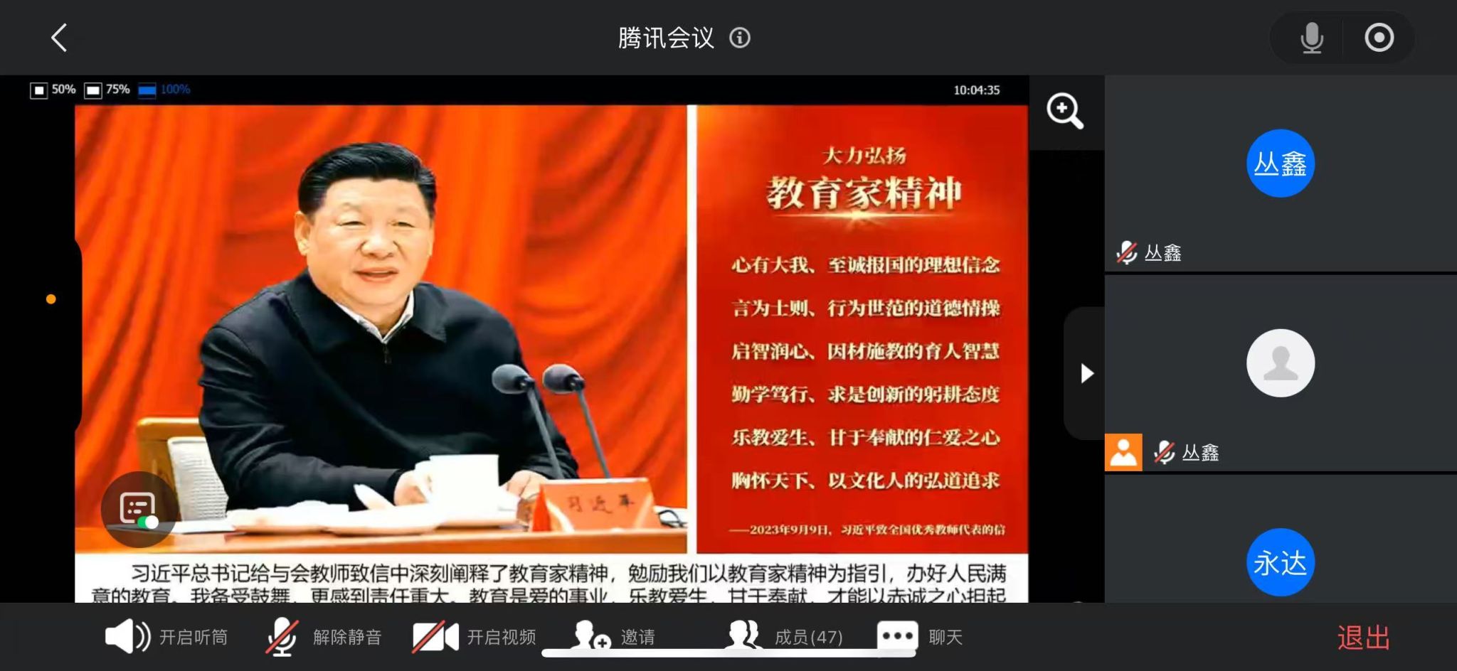 全体教师、地理师范类学生线上集中收看山东省举办的“弘扬教育家精神”宣讲活动.