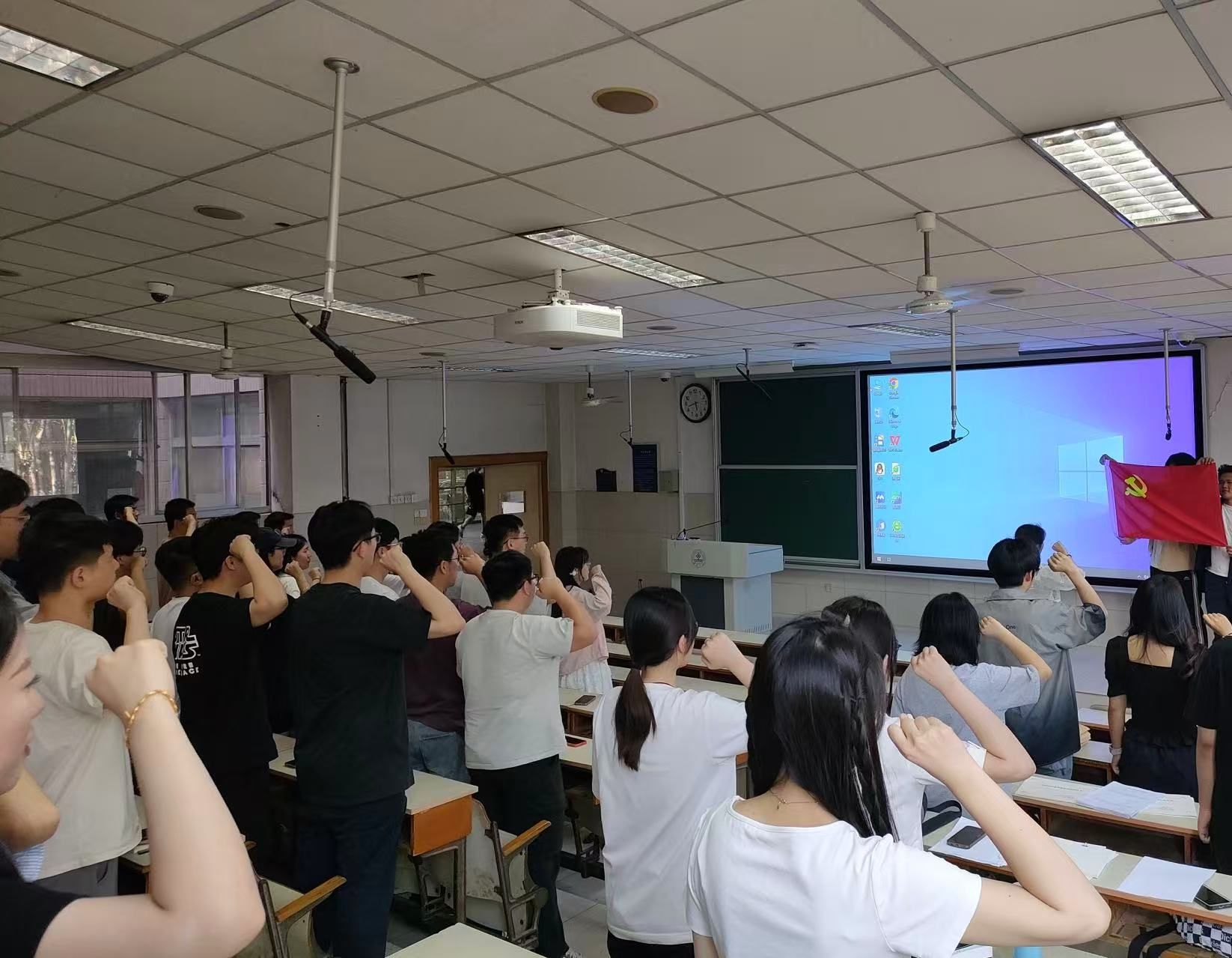 组织全体毕业生党员重温入党誓词。毕业生党员代表宋林静作为领誓人,带领全体毕业生党员面向党旗,进行庄严宣誓。此次集体宣誓仪式是对入党初心的回顾,更是对践行党员承诺的再次坚定。通过重温入党誓词,进一步强化了毕业生党员诚信立德、廉洁修身的理念,筑牢了他们拒腐防变的思想防线。