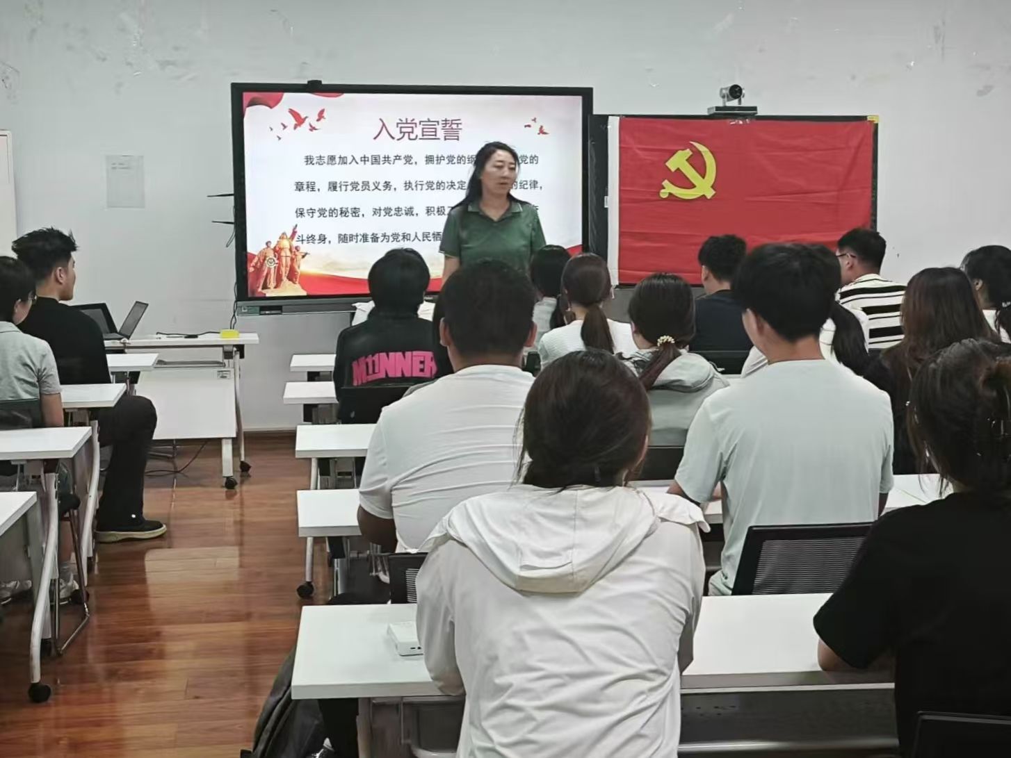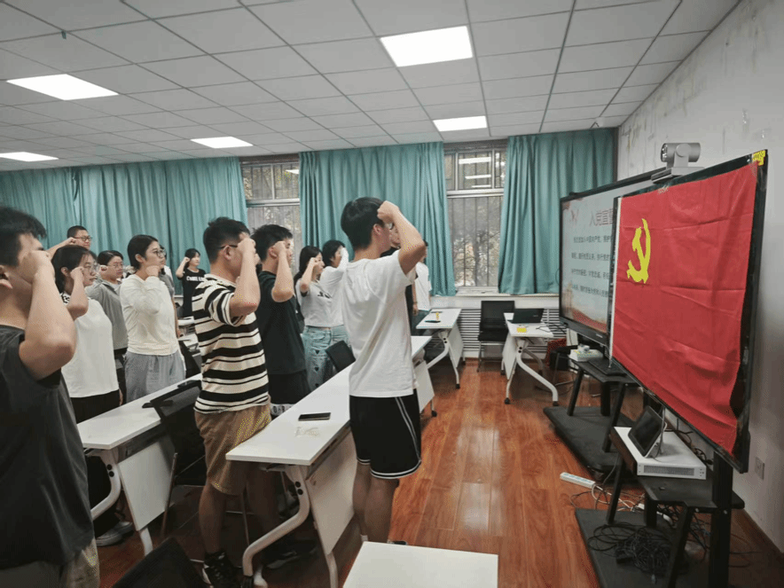 在九教105教室召开新发展党员入党宣誓仪式。