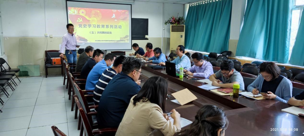 党委关于党史学习教育的动员部署,践行“学史明理、学史增信、学史崇德、学史力行”,成人av水利工程系党支部于2021年5月18日在9教301室召开党支部全体党员大会,开展第五次党史学习教育活动。会议由水利工程系党支部书记边振主持。