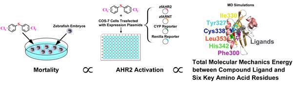 多氯联苯硫醚(Polychlorinated diphenylsulfides, PCDPSs)作为耐高温润滑剂、阻燃剂、绝缘介质和杀螨剂等工业用化学品,具有环境持久性、可长距离迁移和潜在的生物富集与生物放大的特征,在长江中的检出浓度在ng·L-1的数量级。毒理学研究表明,其对脊椎动物具有致死、生长抑制、肝氧化损伤和生殖异常等危害,具有很高的潜在健康和生态风险。现有研究表明,PCDPSs可以激活哺乳动物和鸟类的芳香烃受体(Aryl hydrocarbon receptor,AHR)并引起下游基因表达。这引出了一个问题,即PCDPSs引起的这些对脊椎动物的损伤作用是否是通过激活AHR介导产生的。解决这个问题可以帮助我们更好地理解PCDPSs的致毒机制,对于其环境风险的防控具有重要意义。