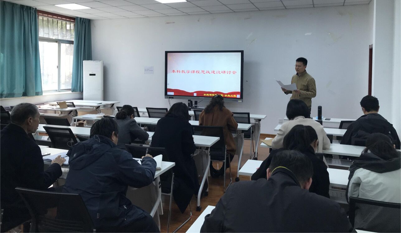 为深入学习习近平总书记关于教育的重要论述,贯彻落实全国教育大会精神,传达我校本科教学课程思政建设推进会的会议内容和会议精神,3月9日下午,成人av水利工程系于9教105室召开了本科教学课程思政建设研讨会。副院长庞桂斌、水利工程系全体教师出席会议,会议由水利工程系教工党支部书记边振主持。