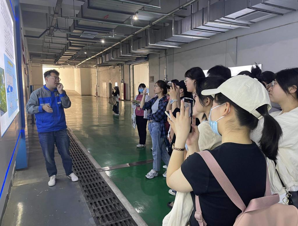 实习期间,光大水务(济南)华山厂技术人员详细介绍了污水处理的工艺流程,并带领学生参观了中控室、地下处理车间及水样展示台,讲解了膜生物反应器(MBR)、紫外线消毒池等处理设施,使同学们进一步了解污水处理的实际操作工艺技术,直观感知入水与出水的水质变化情况。