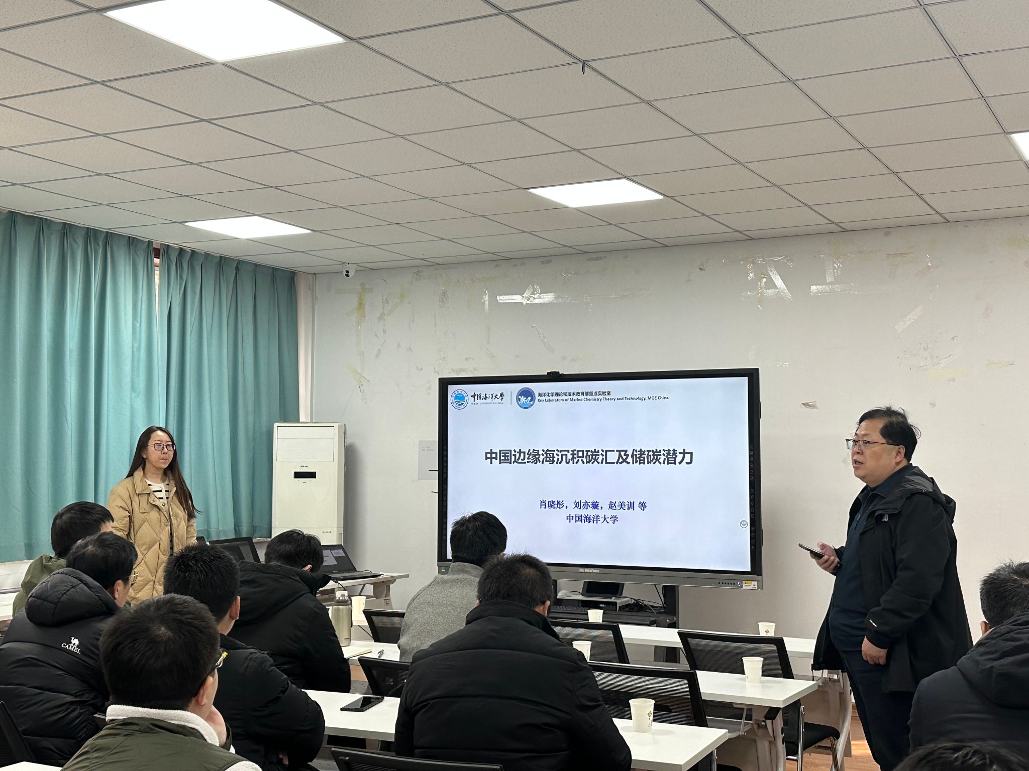 报告会上,肖晓彤教授首先从双碳理论切入,讲述边缘海沉积中有机碳的储量是碳循环系统中重要的“永久”碳汇,并以中国东部边缘海表层沉积物为例,分析中国边缘海受陆-海相互作用及人类活动的影响,建立了中国边缘海沉积有机碳汇评估与核算新方法,准确核算其碳储量和碳储率,可为沉积有机碳增汇措施提供科学依据。随后,肖晓彤教授结合自身申报国家自然科学基因的经历,从立项依据、研究内容、科学问题等方面,对国家自然科学基金申请书撰写进行了逐条剖析,详尽地介绍了各部分撰写的经验及注意事项,报告结束后,参会师生与肖晓彤教授进行了问题互动交流。