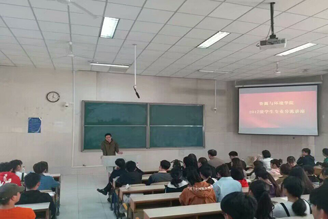 在2教401举办2017级地理科学类专业分流讲座。地理科学与规划系主任宋鹏,专业课老师陆敏、王晓军、高卫东、聂淑敏、王希到场为学生进行讲解。2017级辅导员尹鑫出席并讲话。