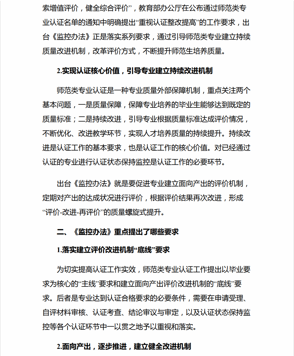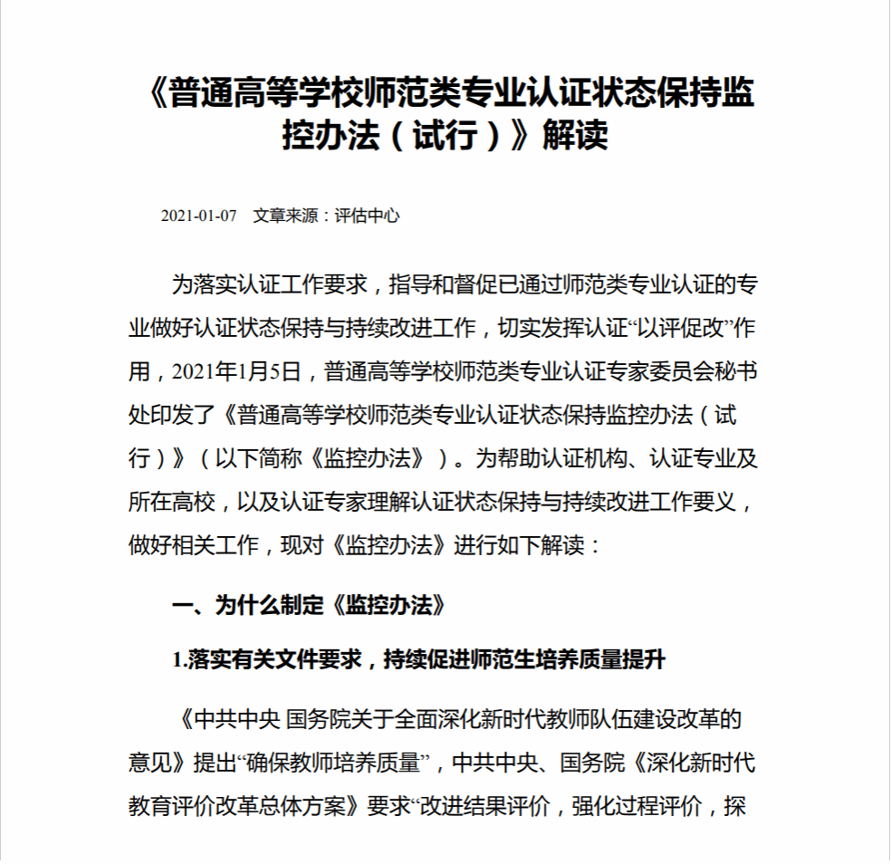 关于印发《普通高等学校师范类专业认证状态保持监控办法(试行)》解读